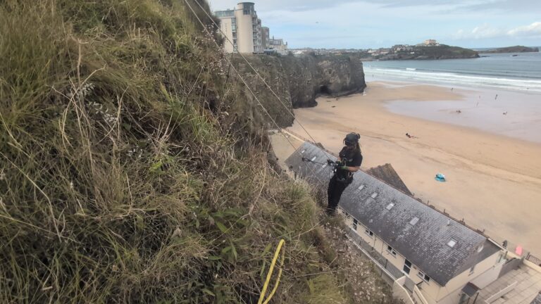 Slope Stability Southwest were asked to assess a recent landslide event that had occured in the sea cliffs to the rear of Tolcarne Beach in August 2025. Tim from Slope Stability Southwest was able to undertake initial stability assessments followed up by a comprehensive slope face stability assessment carried out by rope access. Having identified the slope face above the collapse to be in need of stabilisation works, Slope Stability Southwest have prepared a detailed design specification for the stabilisation worksto ensure the long term safety and security of the slope face.